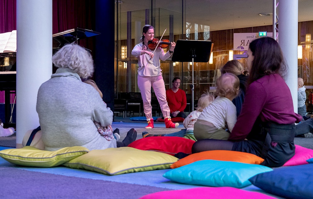 Met je baby naar een klassiek concert(je)? Het kan! In een intieme setting gaan jullie samen verschillende klanken en instrumenten ontdekken verzorgd door een kamermuziekensemble op viool en vleugel. Het concert vindt plaats in onze heerlijk lichte foyer met uitzicht op de Maas. In Duitsland noemen ze dit een ‘Krabbelkonzert’ en daar is het zó populair dat de concerten eigenlijk altijd uitverkocht zijn. Ook bij ons was het eerste concert in oktober uitverkocht. Na de enthousiaste reacties van bezoekers is er zelfs nog één extra voorstelling bijgeboekt. Laat je kleintje rondkruipen, bewegen op de muziek of bij jou op schoot zitten– alles mag. Dit concert duurt ongeveer 30 minuten en is geschikt voor kinderen van 0 tot 2 jaar.