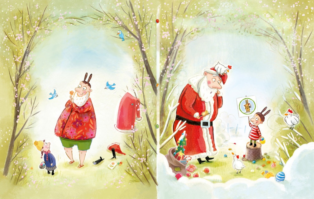 De zoon van de Kerstman heeft een probleem: hij houdt niet van chocolademelk, sneeuw en skiën en hij heeft ook nog eens kerstboom- en rendierallergieën. Hij houdt veel meer van lente, hazen en gekleurde eieren. Eigenlijk wil hij het liefste Paashaas worden wanneer hij later groot is. Maar dat ziet zijn vader totaal niet zitten. Zijn zoon móét hem opvolgen als Kerstman, zelfs zijn over-over-over-grootvader vulde al kindersokken. Het is al eeuwen een familietraditie…