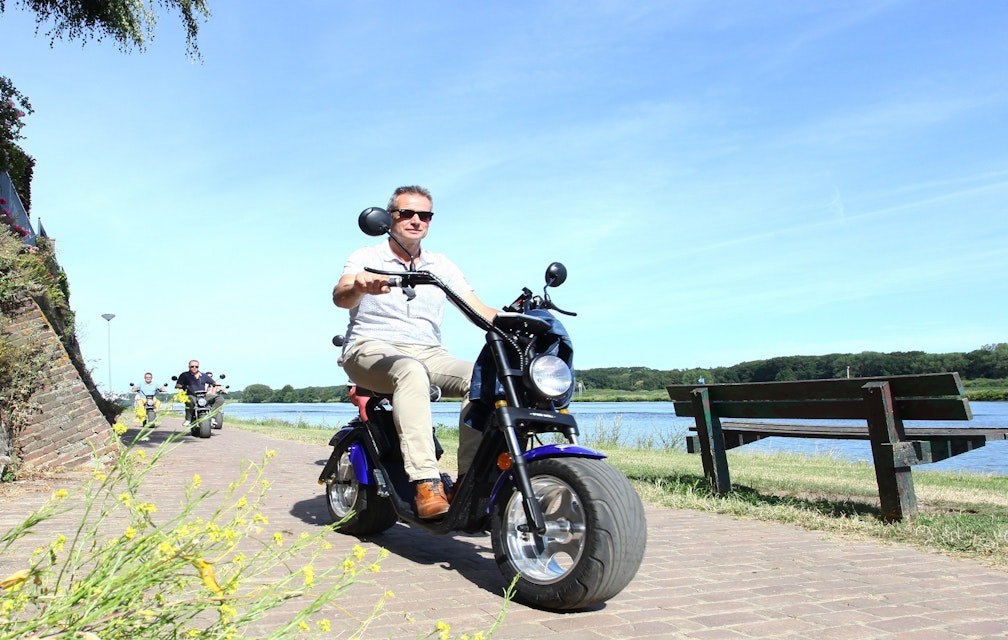 Voel je voor even als een echte biker en huur een E-chopper bij Maashof. Een E-chopper is een elektrische “low-rider” waarmee je zeker opvalt in het verkeer.